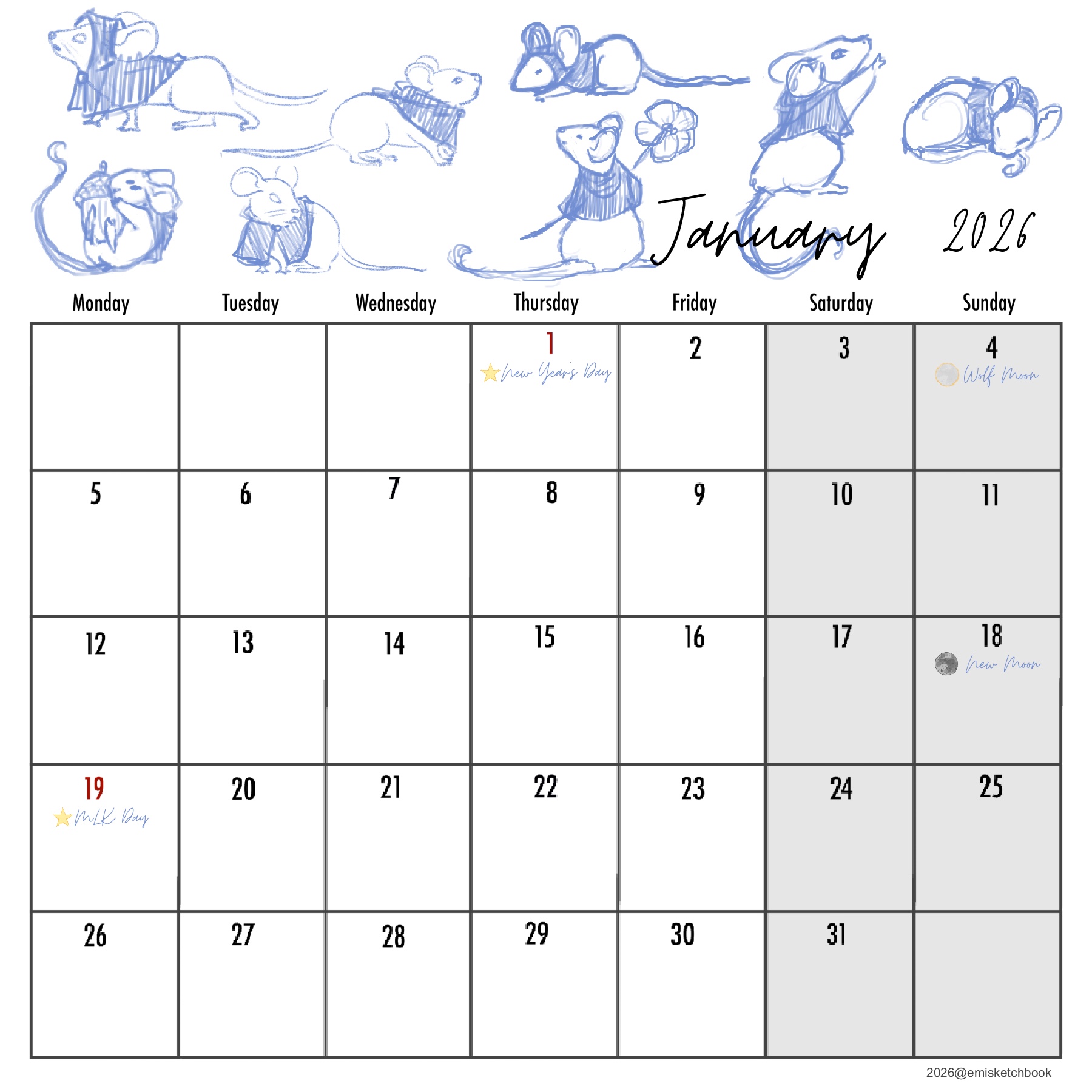 This month’s calendar: #