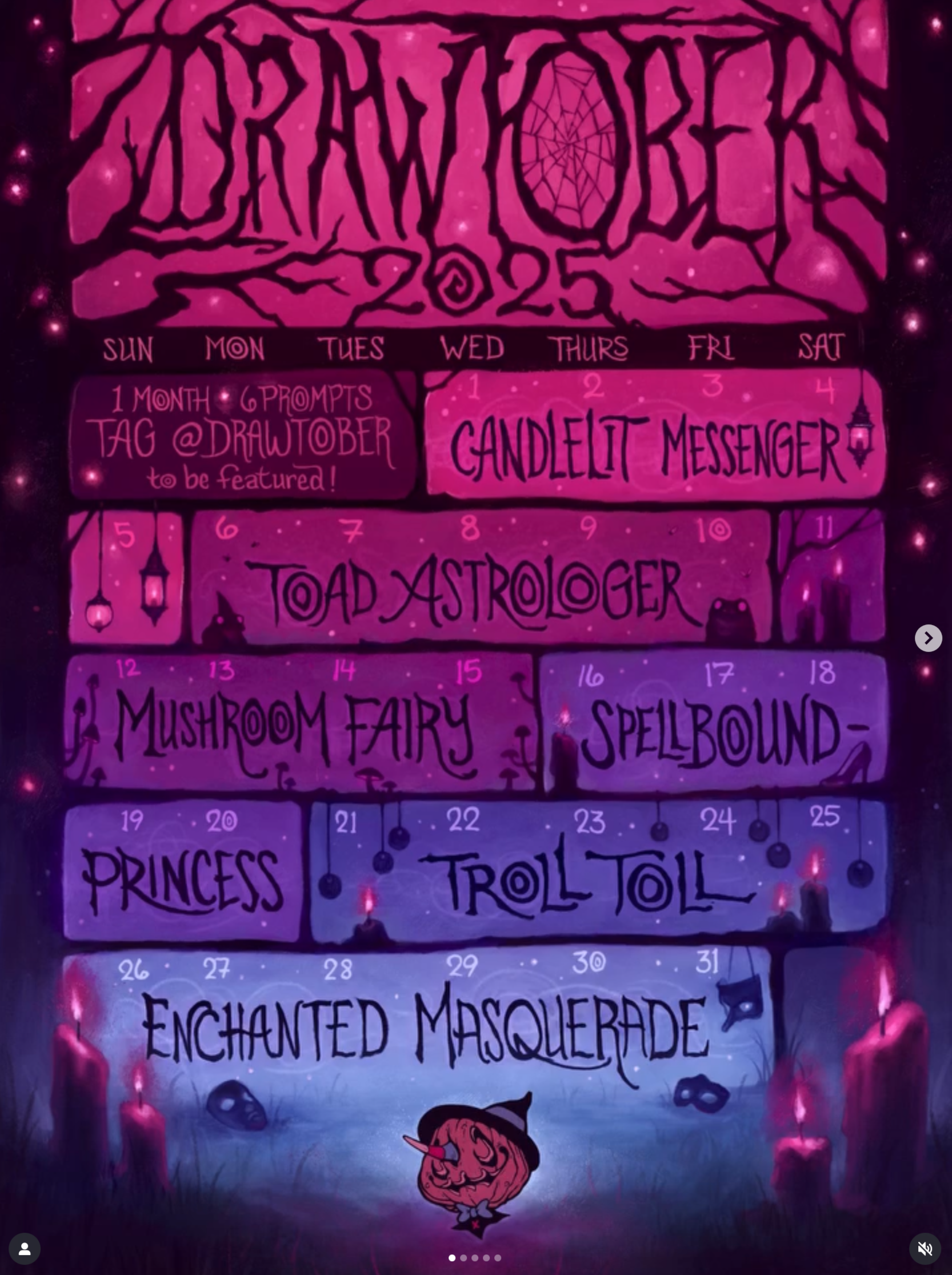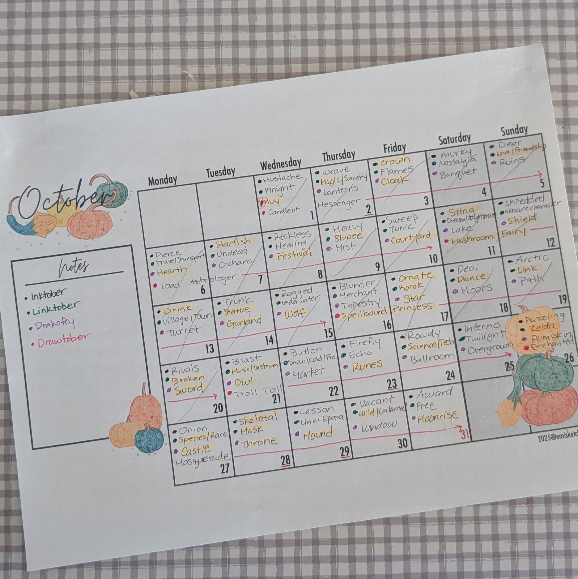 October is also the month of art challenges! Inktober, Drawtober, Peachtober, inset-a-name-tober, there are so many different and uniques challenges created by talent artists all over social media. It can be a little daunting and overwhelming, so I thought I’d share the way I manages all the options and prompts this year.