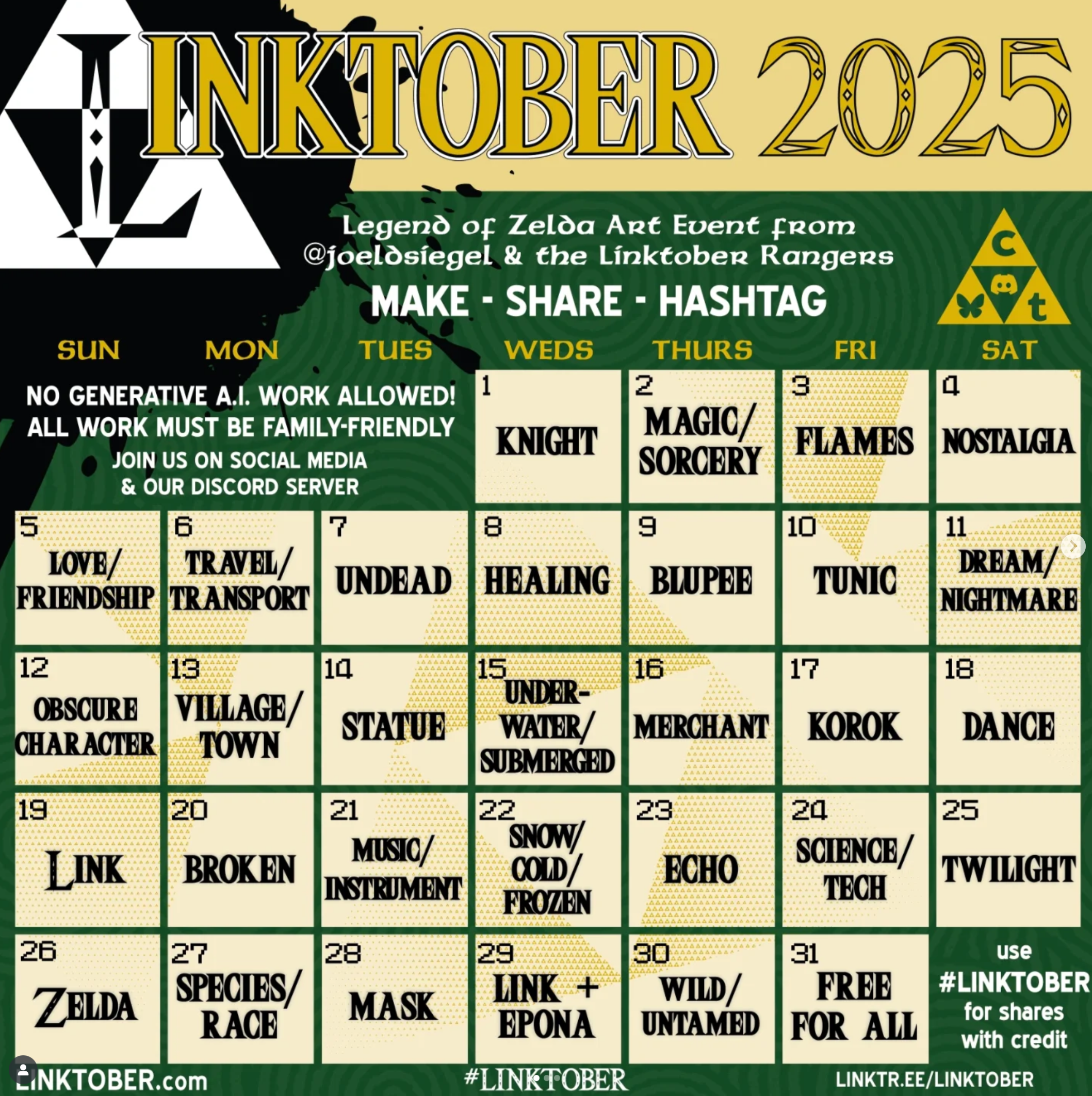 After Inktober became popular, other artists statted creating their own “-tober” prompt lists. The number of lists available to follow is overwhelming. Almost every artist with a community following will do their own prompt lists, and I think it’s great. It’s the reason I find it so difficult to choose just one list to do each year.